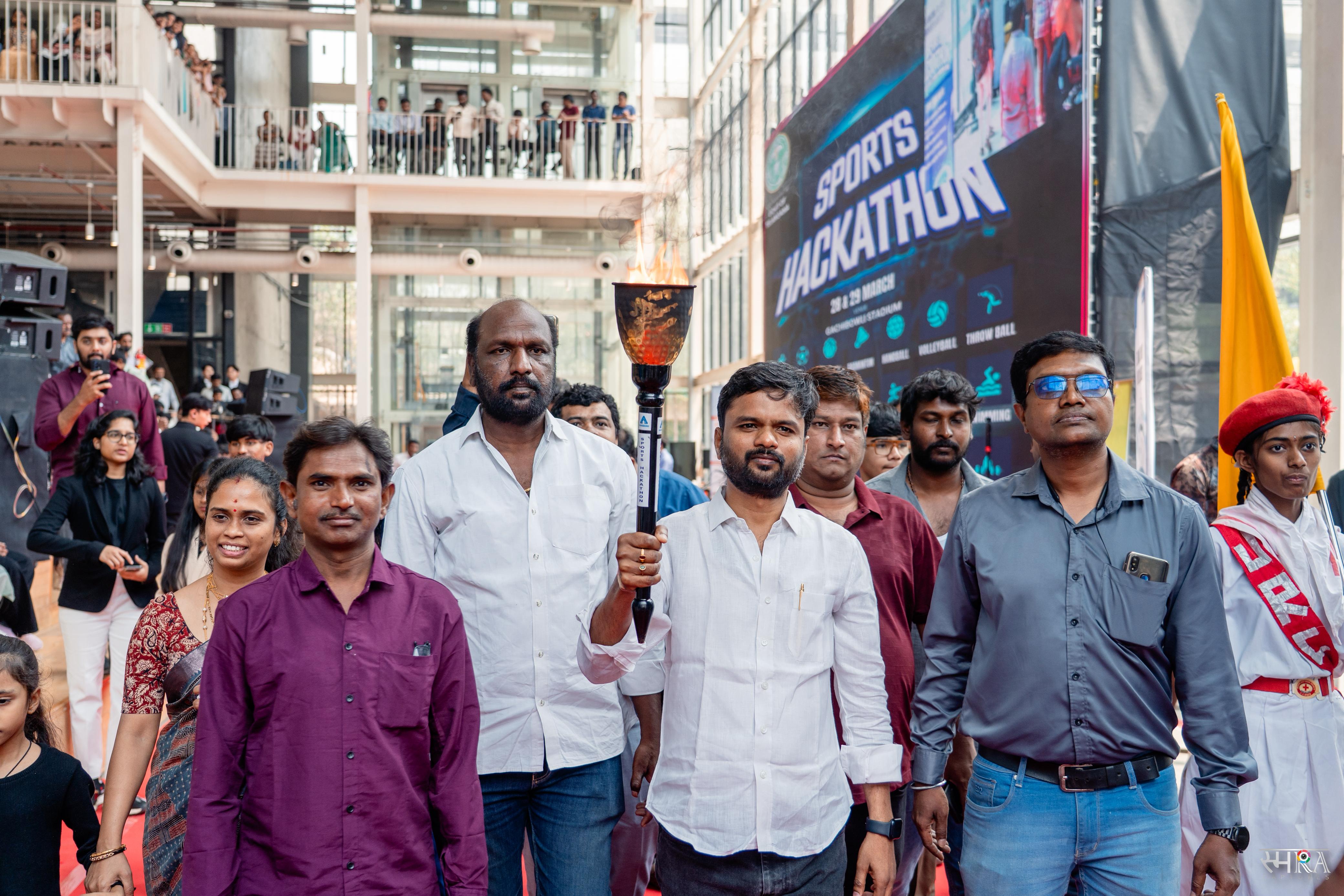 During the ceremony, Sundeep Kumar Makthala, Brand Owner of Hackathon, handed over the Torch to Harisai Reparthi, Brand Licensee for Telangana, formally initiating the statewide Torch Relay. The relay will now travel across all 33 districts, engaging athletes, students, startups, and youth communities with the support of District Collectors and local administrations.